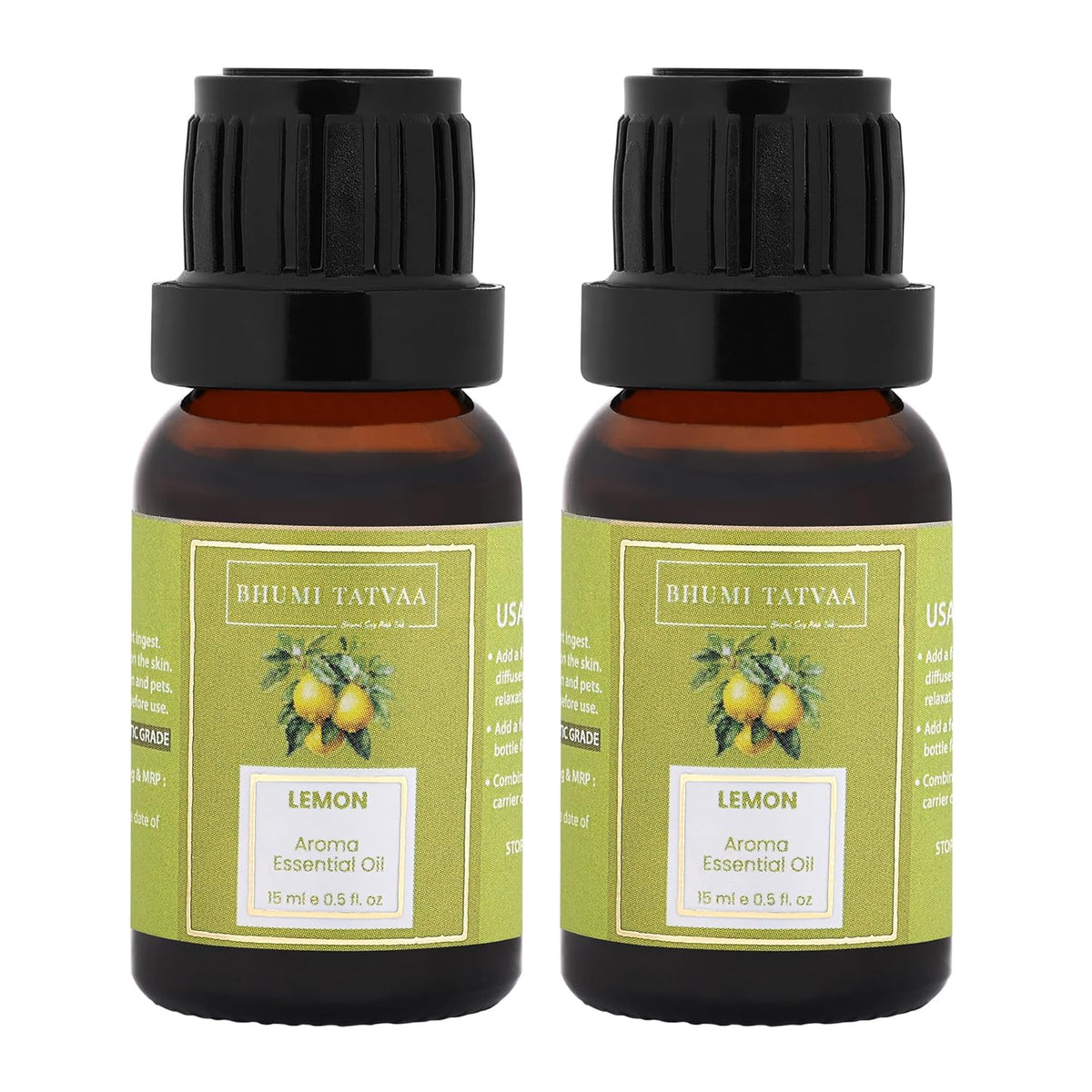 Bhumi Tatvaa Lemon Essential Oil | Pure Aromatic Oil for Relaxing Fragrance | Ideal for Diffusers, Massage, and Everyday Use | Natural Lemon Scent - Pack of 2 - 15ml Each
